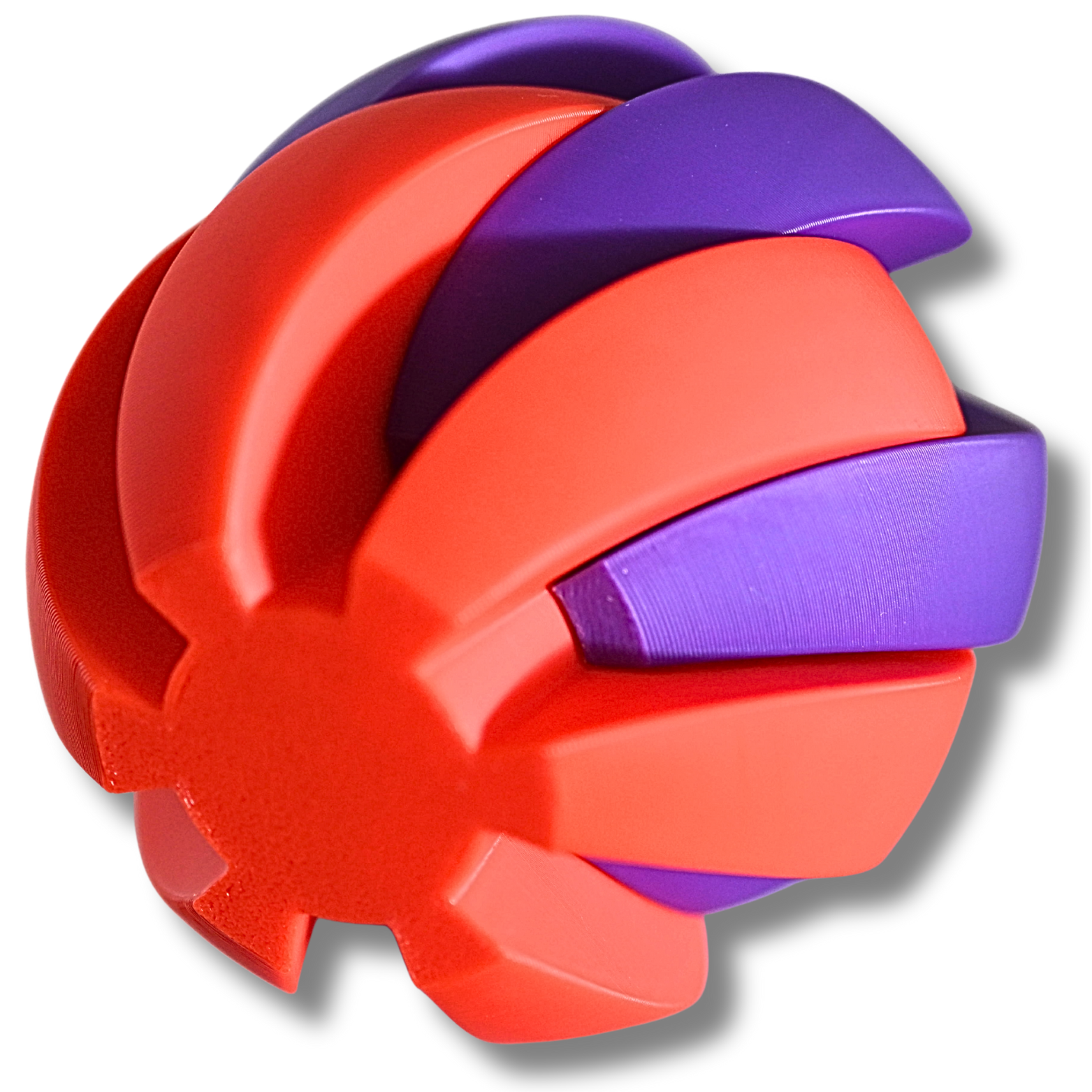 Diese zweiteilige Fidget-Spiralkugel in Rot und Violett ist ein farbenfrohes Highlight aus der Spiralkugel-Serie von Fidget Tools. Sie kombiniert spielerisches Design mit präziser 3D-Technik und bietet ein einzigartiges haptisches Erlebnis. Beide Kugelhälften sind spiralförmig konstruiert und greifen exakt ineinander – beim Zusammensetzen entsteht eine harmonisch geschlossene Kugel mit fließenden Linien.